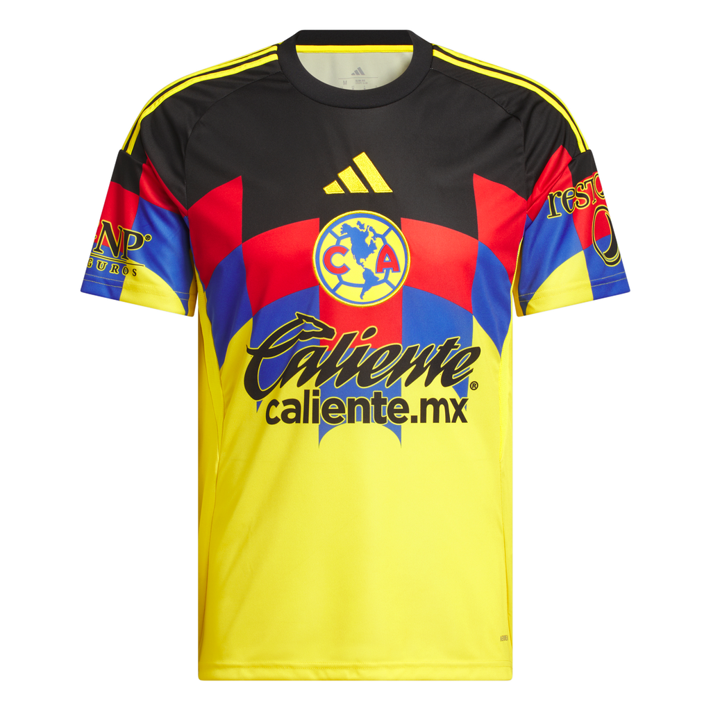 A legend takes flight. This home jersey celebrates Club América teaming back up with adidas. A modern take on one of the duo's most memorable collaborations, it features eagle feather-inspired graphics on the chest and a prominent, centred badge. Moisture-managing AEROREADY and soft fabric ensure football fans stay comfortable while they back their team.