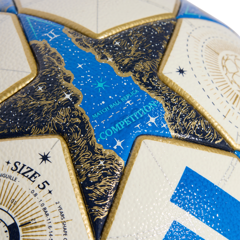 Europe's greatest teams meet under the stars to plot their football destinies. Displaying a bold design inspired by the official UCL league stage ball, this adidas Competition ball has a seamless construction and resilient butyl bladder for stellar performances on the field. Graphics inspired by astronomical clocks and signs of the zodiac mean there's never a bad time to pull this beauty out of your kit bag.