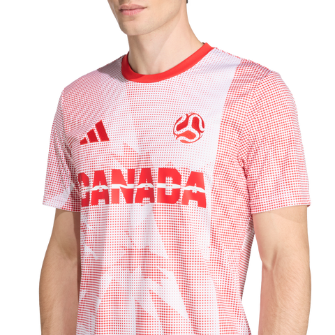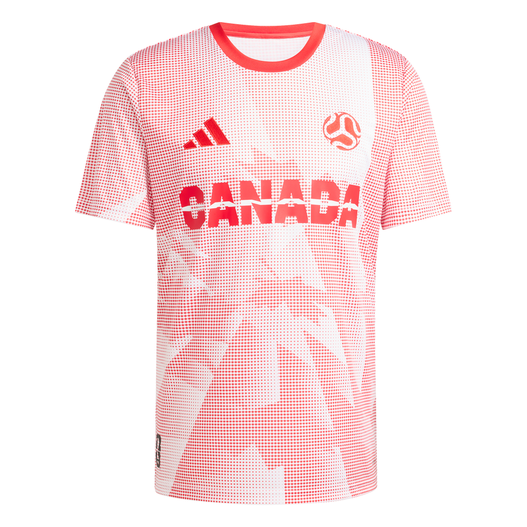The adidas Canada Jersey football T-Shirt celebrates the spirit of the FIFA World Cup 2026 hosts, weaving together the vibrant colours and symbols of Mexico, USA, and Canada. This football top is more than just apparel - it's a striking tribute to the culture of the game and unity of the host nations. Designed with a regular fit and crew neckline, it pairs comfort and style whether on and off the pitch - making it a great choice for a casual kickabout or for cheering on your team in front of the big screen. The distinctive 3-Bar Logo on the right side of the chest provides a touch of adidas heritage, while the white and vivid red colourway makes a striking statement. Whether cheering from the stands or squaring up for a local derby on the pitch, this sports shirt is designed to inspire and connect fans worldwide.